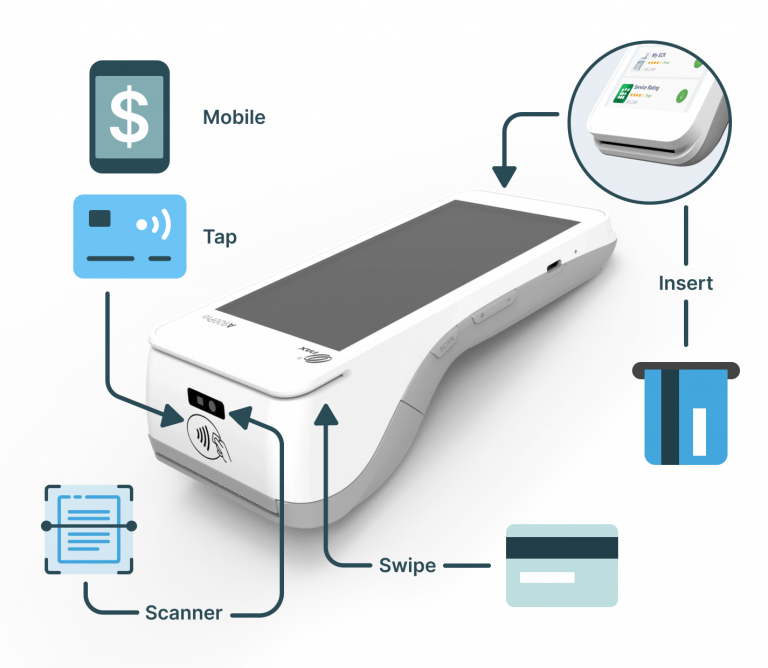 Only credit card terminal in its class that is truly mobile – fits in a pocket and no dongles required!